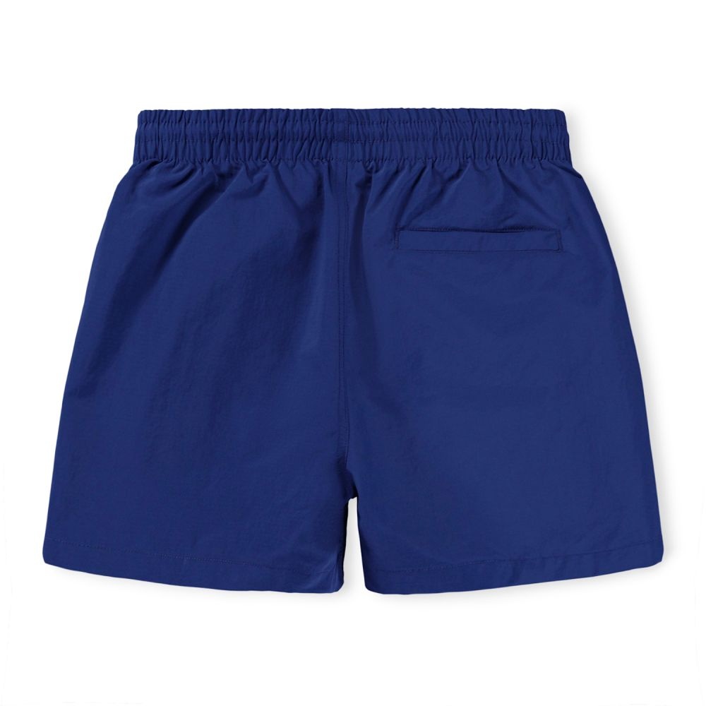 Deze zwembroek van Molo heeft een tijdloze, diepblauwe kleur en een sportieve uitstraling. De short is voorzien van een elastische tailleband met verstelbaar trekkoord, waardoor hij comfortabel zit en goed blijft zitten tijdens zwemmen en spelen. De lichte, sneldrogende stof maakt deze zwemshort praktisch voor lange dagen aan het water. Het herkenbare Molo Swim-logo op de pijp geeft een subtiele, stoere touch. Een fijne basic zwembroek die eenvoudig te combineren is en past bij de frisse en functionele stijl van Molo.