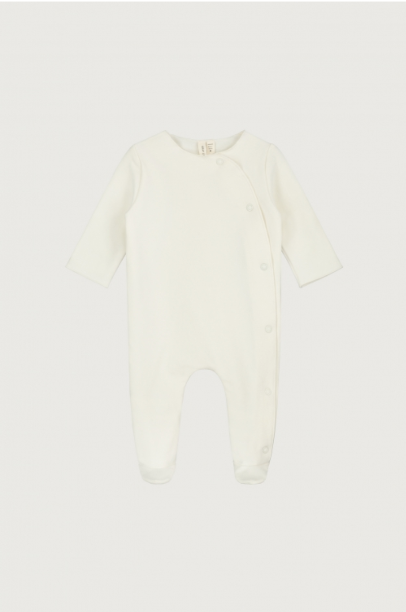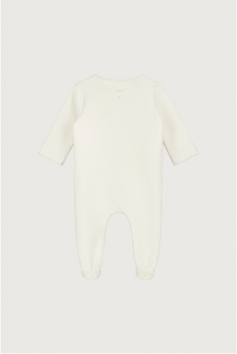 Zacht newbornboxpakje met lange mouwen in effen crème. Gemaakt van katoen met wat elastaan voor de perfecte pasvorm. Het heeft een ronde hals, babyslotafwerking en drukknopen aan de voorkant, waardoor het makkelijk aan en uit te trekken is. Dit Gray Label eerste pakje kan je ook erg goed als kraamcadeau geven.