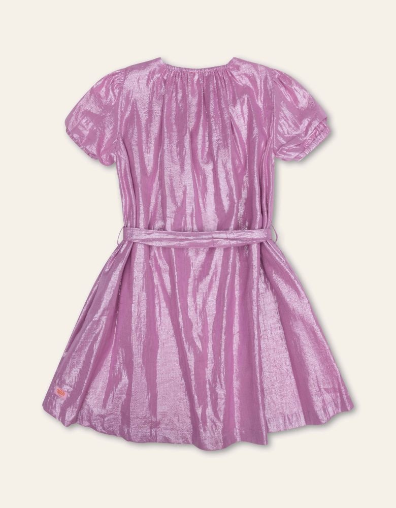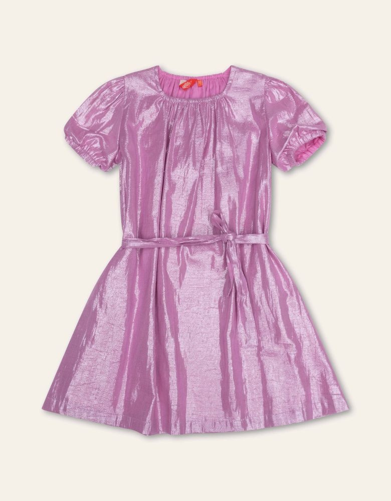 De Oilily Dania jurk in Fuchsia Pink straalt dankzij het sprankelende metallic draad dat is verweven met zacht katoen. De roze metallic jurk heeft korte pofmouwen en een subtiele riem voor een elegante pasvorm. Het luchtige ontwerp en de opvallende kleur maken dit tot een perfecte keuze voor speciale gelegenheden of feestelijke momenten. Gemaakt van 75% katoen en 25% metaalgaren, combineert het comfort met een unieke, glanzende uitstraling.