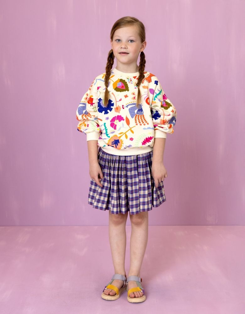Deze sweater heeft een speelse, kleurrijke all-over print die meteen in het oog springt en zorgt voor een vrolijke uitstraling. De zachte katoenkwaliteit draagt comfortabel en is prettig voor dagelijks gebruik, terwijl de boord aan de hals, mouwen en zoom zorgt voor een fijne pasvorm. De trui is makkelijk te combineren met een broek, legging of rok en geeft elke outfit een levendig accent.