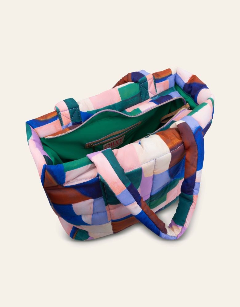 De Soleil shopper van Oilily is een ruime en opvallende tas met de abstracte print Highland Hues. De kleurrijke vormen in warme tinten geven deze shopper een artistieke uitstraling. Dankzij het ruime hoofdvak met ritssluiting en extra open vak neem je al je spullen georganiseerd mee. Het gewatteerde ontwerp en de stevige handvatten zorgen voor een comfortabele draagervaring. Afgewerkt met faux leather details en een bijpassende Oilily munthanger.