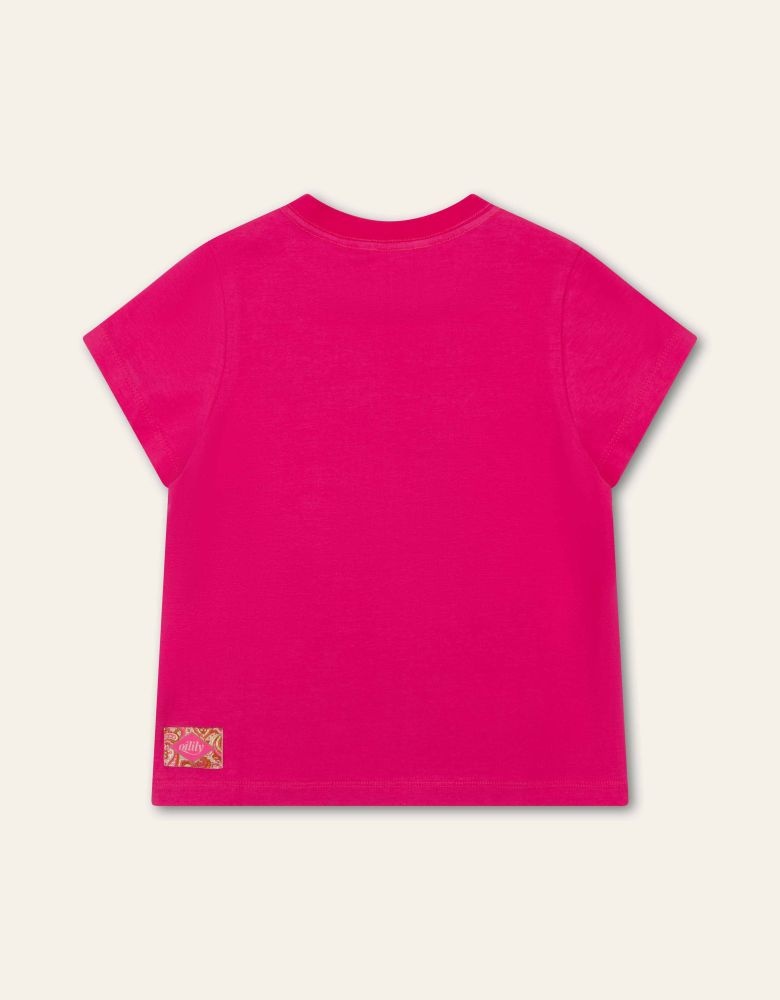 Dit t-shirt heeft een heldere, krachtige roze kleur en een subtiele Oilily-print op de borst. De zachte, soepele stof zorgt voor een fijne pasvorm die prettig meebeweegt, waardoor het shirt comfortabel draagt tijdens elke activiteit. Dankzij het tijdloze silhouet is dit t-shirt een echte klassieker die eenvoudig te combineren is. Een veelzijdige basis in de garderobe van je kind.