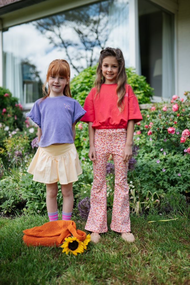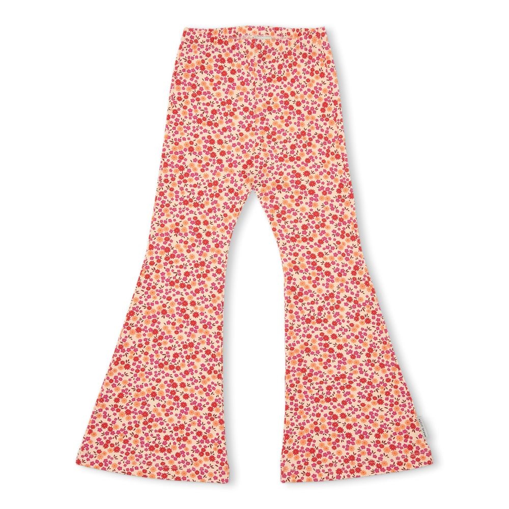 Deze bloemen flared legging van Petit Blush heeft een speelse en retro uitstraling. De broek is uitgevoerd in een fijne all-over bloemenprint in roze, rood en warme tinten en gemaakt van soepel katoen dat prettig meebeweegt. Dankzij de elastische tailleband zit deze flared broek comfortabel en sluit hij mooi aan, terwijl de wijduitlopende pijpen zorgen voor een vrolijk silhouet. Leuk te combineren met een t-shirt, blouse of sweater. Een opvallende broek met een zachte feel voor elke dag.