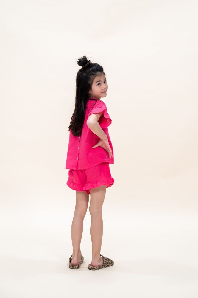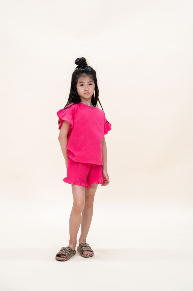 De Loua Frill Blouse van Petit Blush in de kleur Party Punch is een opvallend en stijlvol kledingstuk, gemaakt van 100% biologisch katoen. Deze blouse heeft verfijnde ruches op de schouders, wat een speels accent toevoegt aan het eenvoudige basis ontwerp. Het luchtige materiaal en de levendige roze tint maken het een perfecte keuze voor zonnige dagen. Combineer deze blouse met een short of rokje voor een comfortabele en modieuze outfit. Een veelzijdig item dat zowel casual als feestelijk gedragen kan worden.