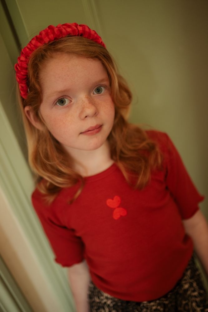 Deze rood / oranje geruite haarband van Petit Blush is een vrolijk accessoire met een speelse uitstraling. De haarband is gemaakt van zacht katoen en heeft een geplooid ontwerp dat comfortabel zit en goed op zijn plek blijft. Het ruitpatroon in warme tinten geeft een frisse, tijdloze look, terwijl het subtiele Petit Blush-label zorgt voor een herkenbaar detail. Deze haarband is makkelijk te combineren met zowel casual als feestelijke outfits en voegt net dat beetje extra toe aan elke look.