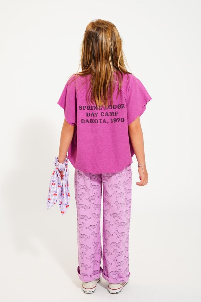 Deze paarse broek van Piupiuchick is gemaakt van 100% biologisch katoen en combineert een speelse stijl met duurzaamheid. De broek valt op door een vrolijke tijgerprint in een unieke paarse kleur, perfect voor kinderen die houden van opvallende designs. Het rechte model biedt comfort en bewegingsvrijheid, terwijl de knoopsluiting aan de voorkant zorgt voor een klassieke uitstraling. Aan de binnenkant van deze broek kan de taille worden versteld. De zakken maken het ontwerp helemaal af. Ideaal te combineren met een eenvoudig t-shirt of een kleurrijke top voor een speelse en modieuze look. Perfect voor dagelijks gebruik met een vleugje eigenzinnigheid.