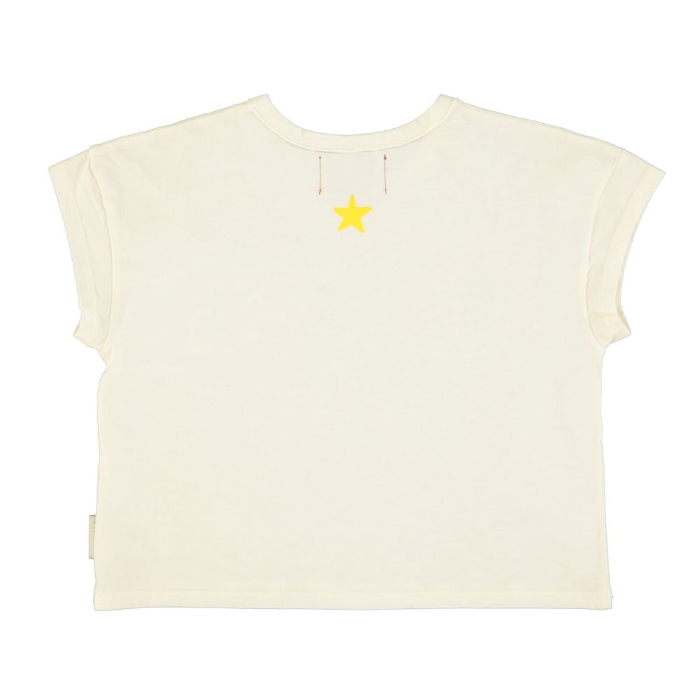 Dit zomerse t-shirt van Piupiuchick is gemaakt van 100% katoen en biedt een perfecte balans tussen comfort en speelsheid. Het lichtgele topje is bedrukt met het woord 'CAMP' in kleurrijke letters en heeft een stijlvol borstzakje voor een extra detail. De luchtige stof en losse pasvorm maken dit shirt ideaal voor warme dagen, terwijl de opgerolde mouwtjes een casual uitstraling geven. Combineer dit veelzijdige t-shirt met shorts voor een vrolijke en comfortabele look. Perfect voor avontuurlijke dagen in de zon!