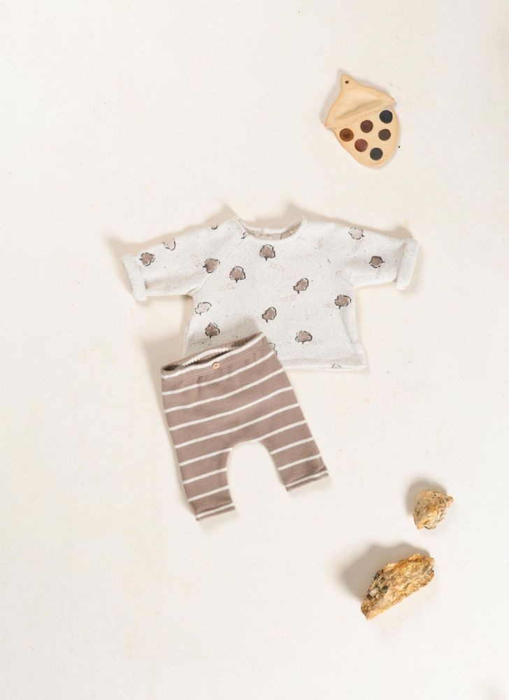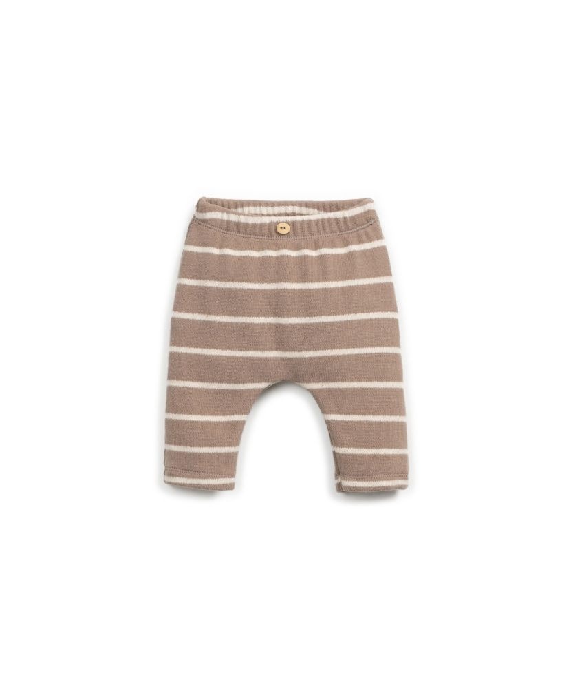 Dit broekje van Play Up is uitgevoerd in een zachte gebreide stof in een lichtbruine kleur met crème streepjes. Het broekje heeft een elastische taille en een houten knoopje aan de voorkant. Dankzij de relaxte pasvorm en de zachte katoenmix is deze baby legging ideaal voor elke dag. Het broekje combineert moeiteloos met rompertjes, truien of vestjes en vormt zo een fijne basis voor iedere dag.