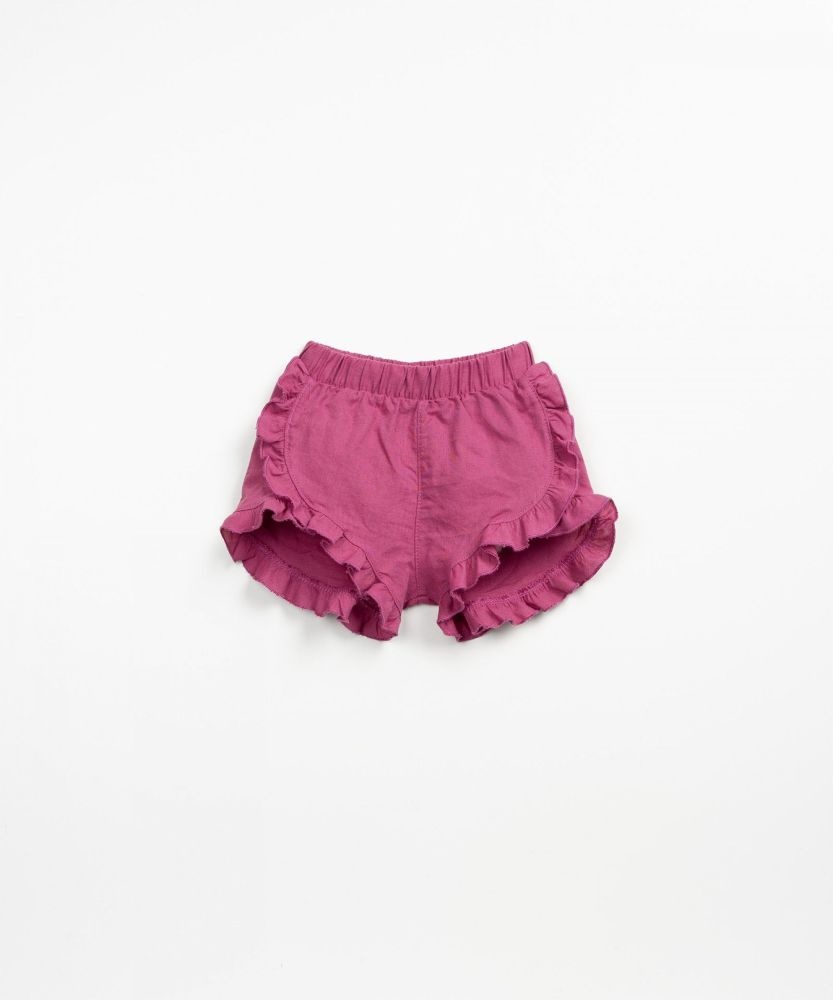 Deze speelse short van Play Up is gemaakt van een hoogwaardige mix van 52% linnen en 48% biologisch katoen, wat zorgt voor een luchtige en duurzame keuze. De opvallende roze kleur en de sierlijke ruches aan de randen geven deze korte broek een schattige en vrolijke uitstraling. De elastische tailleband biedt een comfortabele pasvorm, ideaal voor een actieve dag. Perfect te combineren met een top of t-shirt voor een zomerse outfit. Een praktische en stijlvolle toevoeging aan de garderobe van jouw kleintje.