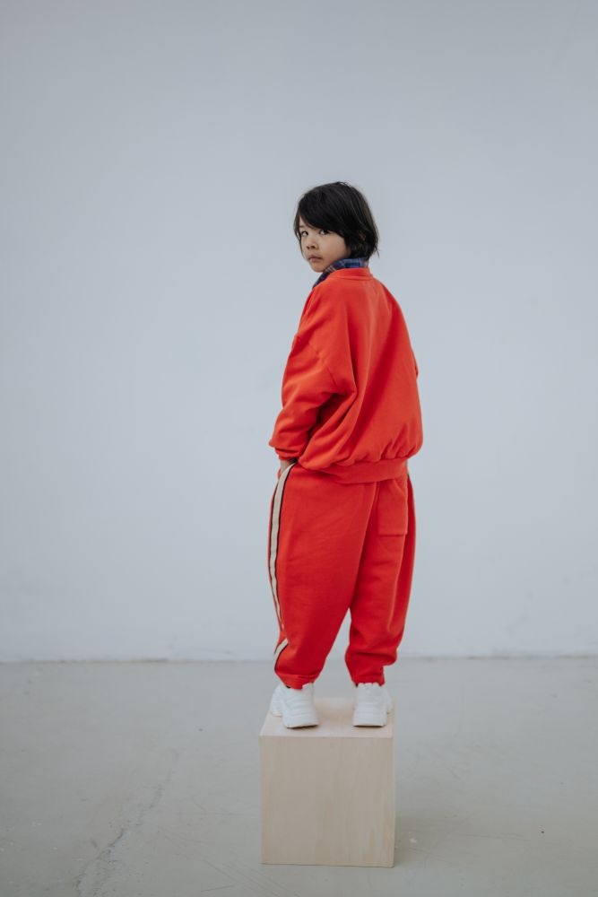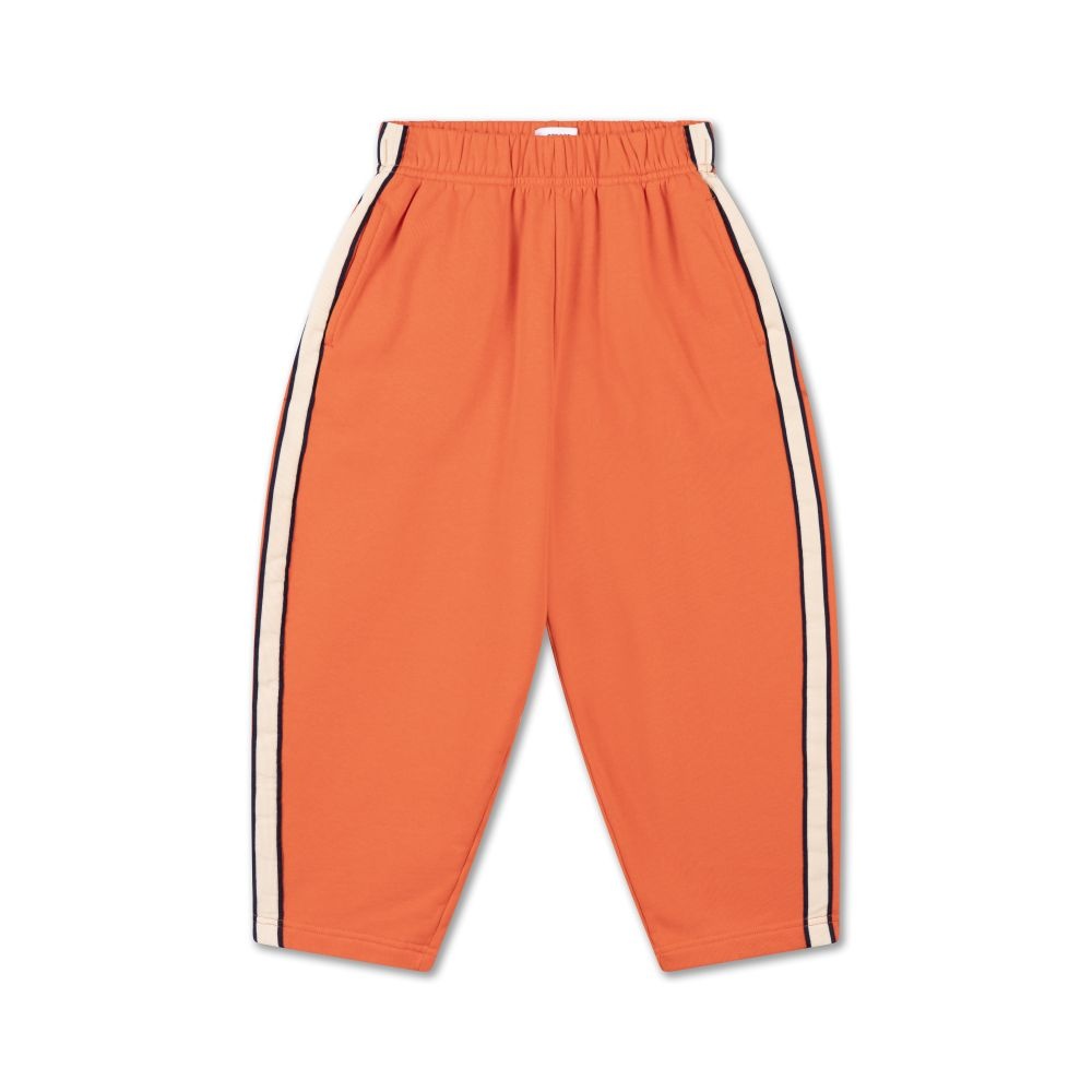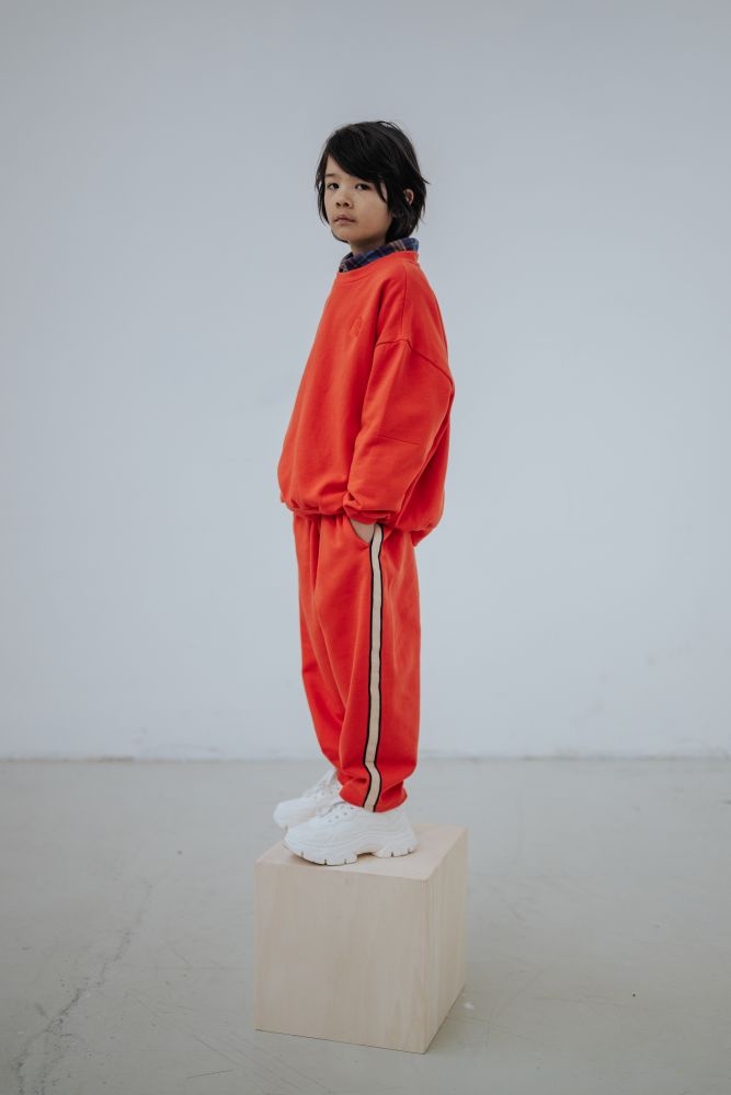 De Loose Ease Pant van Repose AMS in de opvallende kleur Radiant Red biedt een frisse en sportieve twist aan comfortabele kinderkleding. Deze ronde broek heeft een relaxte pasvorm en is afgewerkt met contrasterende biezen langs de zijkanten voor een speels effect. Dankzij de elastische taille en zachte, biologische katoenkwaliteit is deze broek perfect voor dagelijks gebruik. Een fijne combinatie van stijl en draaggemak, ideaal voor actieve kids die zich vrij willen bewegen.