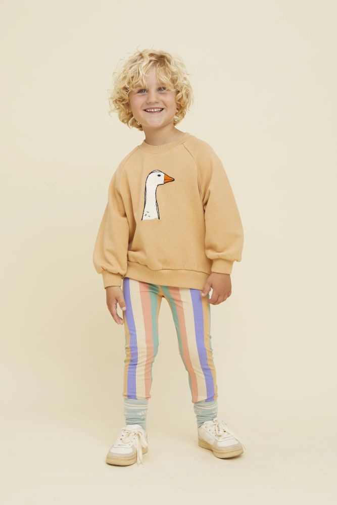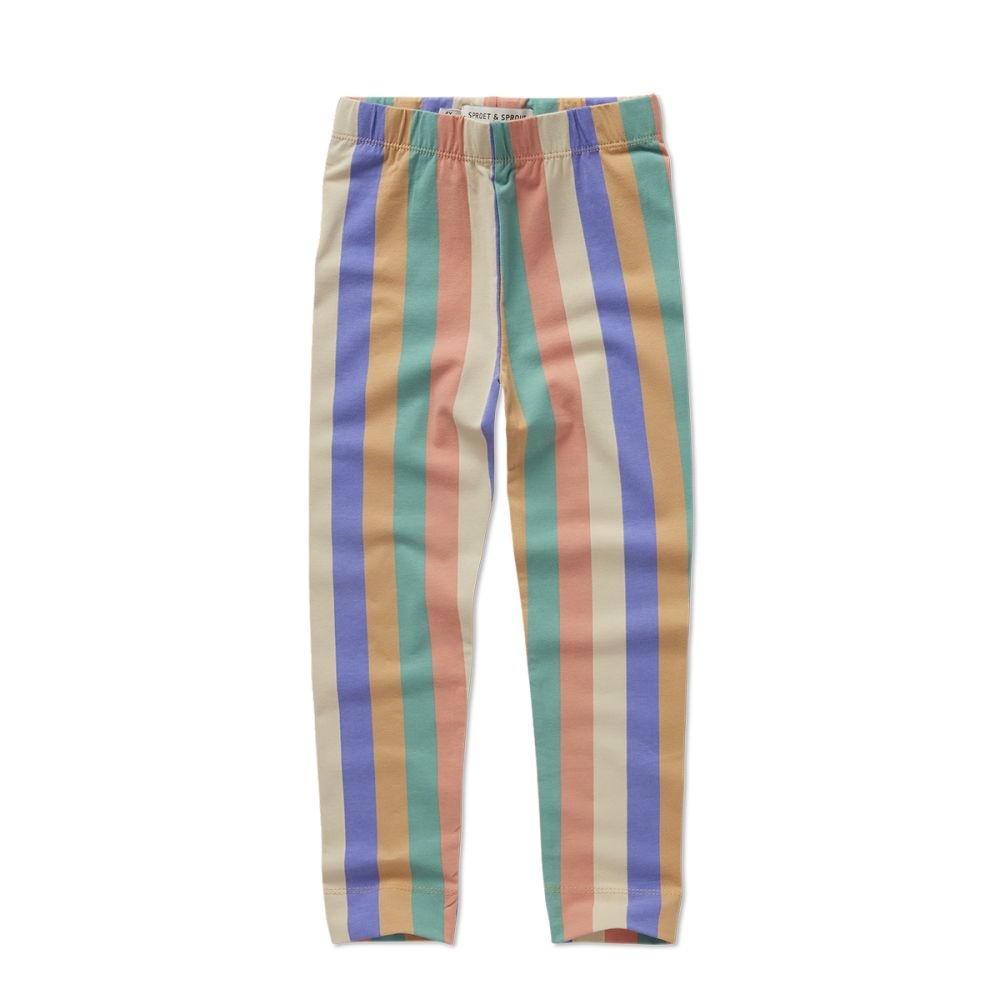 Legging met verticale strepen in de vrolijke kleuren beige, paars, geel, groen en roze van Sproet en Sprout. De lange broek heeft een comfortabele pasvorm door de elastische tailleband. De broek is te combineren met een leuke oversized trui of onder een jurkje.