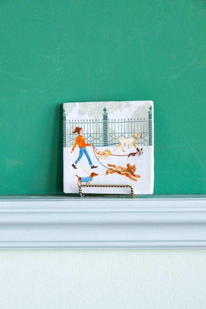 Een lange wandeling in het park met mijn favoriete viervoeters – wat wil je nog meer? Dit vrolijke StoryTile-tegeltje laat een vrouw zien die met haar honden op pad is, elk met een eigen karakter en enthousiasme. De illustratie straalt energie, vrijheid en liefde voor dieren uit. Perfect voor hondenliefhebbers of als cadeau voor iemand die blij wordt van buiten zijn en trouwe viervoeters.