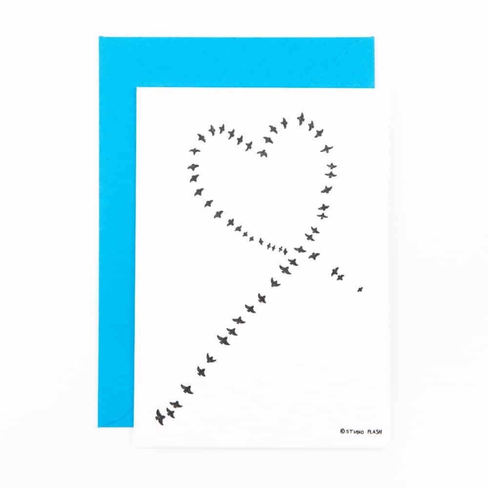 Studio Flash | Letterpress Card ‘Birds flying in heart shape’