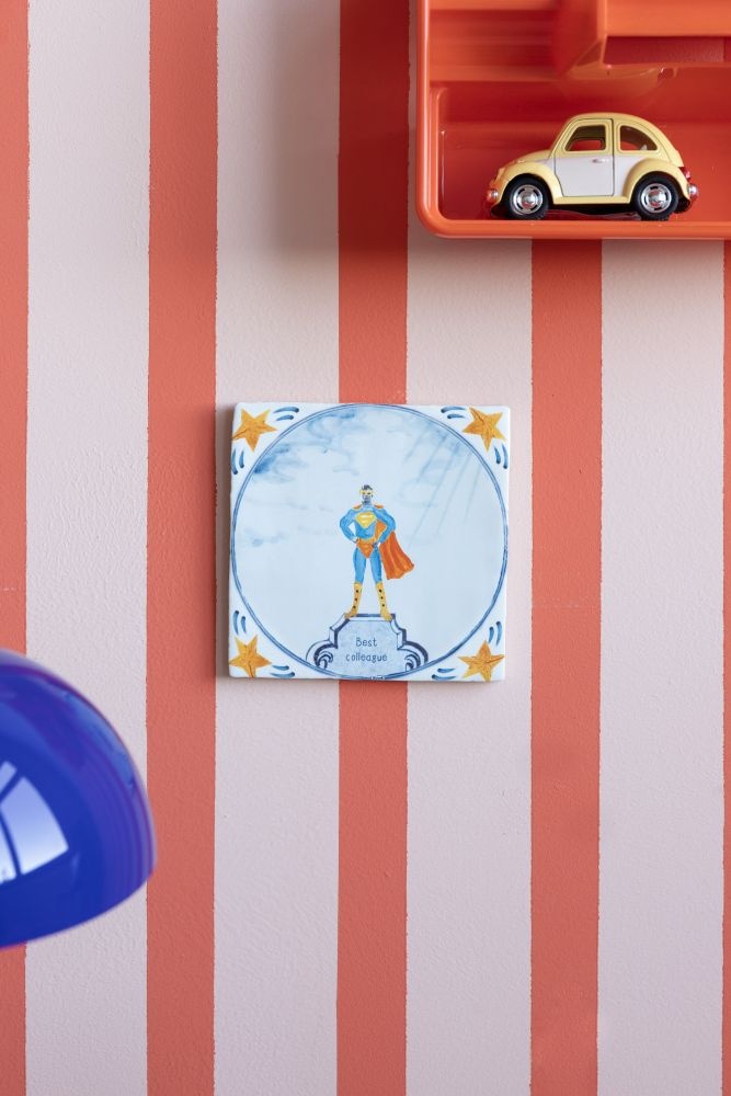 Daar is hij: Superman! De man die alles kan. Wie is jouw Superman? Deze tegel van Storytiles komt in het formaat 10x10cm en heeft een handig ophangsysteem.