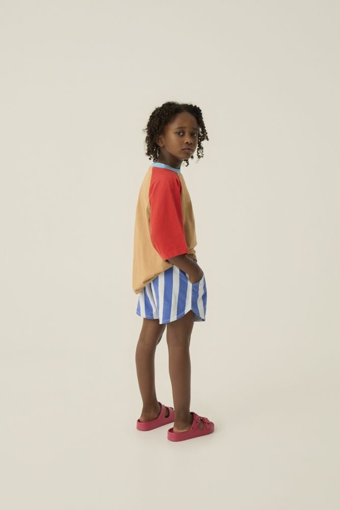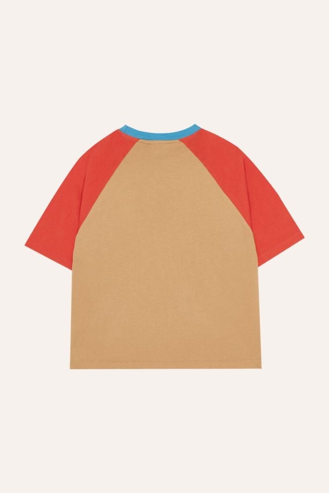 Dit t-shirt van The Campamento heeft een speelse colorblock uitstraling met een camel lichaam, roodkleurige raglanmouwen en een fris blauw accent bij de hals. De losse pasvorm en korte mouwen maken dit shirt comfortabel en makkelijk te dragen. Gemaakt van zacht katoen dat prettig aanvoelt op de huid en geschikt is voor actief spelen. Het kleine The Campamento-logo op de borst geeft het tshirt een subtiel detail. Deze top met korte mouwen is eenvoudig te combineren met een short, jeans of lichte broek en past perfect in een vrolijke garderobe.