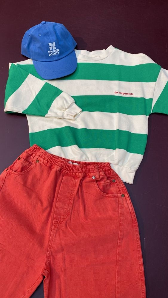 Deze gestreepte trui van The Campamento heeft een frisse en speelse uitstraling. De sweater is uitgevoerd in brede groene en crème strepen, wat zorgt voor een opvallende maar tijdloze look. De comfortabele sweatshirt heeft een relaxed model met lange mouwen, elastische boorden en een zachte binnenkant, ideaal voor elke dag. Het subtiele The Campamento-logo op de borst geeft de trui een herkenbare finishing touch. Perfect om te combineren met een jeans, short of comfortabele broek voor een nonchalante outfit.