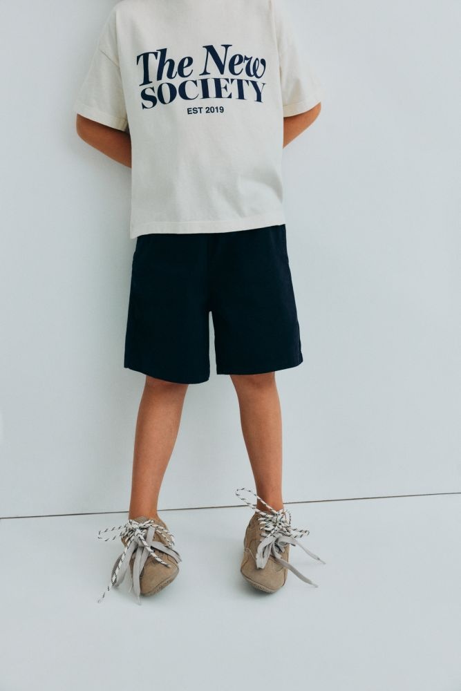 Deze zwarte korte broek van The New Society is een comfortabele bermuda broek voor dagelijks gebruik. De short is uitgevoerd in een diepe zwarte kleur en gemaakt van zacht katoen, wat zorgt voor een prettige en ademende pasvorm. Dankzij de elastische tailleband met koord sluit deze korte broek mooi aan en is hij gemakkelijk aan en uit te trekken. De short heeft een relaxed silhouet en is ideaal om te dragen tijdens spelen, ontspannen of onderweg. Mooi te combineren met een t-shirt, sweater of top met korte mouwen voor een complete outfit.