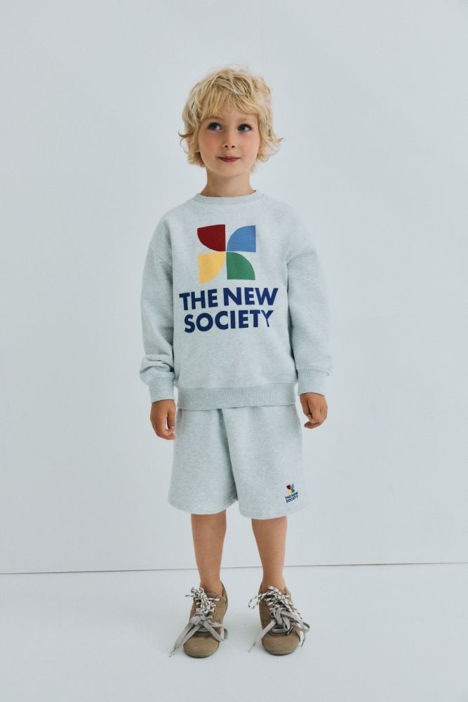 Deze sweater van The New Society is een comfortabele en herkenbare sweatshirt voor elke dag. De trui is uitgevoerd in een lichte grijze kleur en heeft op de voorkant het iconische The New Society-logo in rood, blauw, geel en groen. Dankzij de ronde hals, lange mouwen en ribboorden heeft deze sweatshirt een fijne pasvorm die prettig draagt tijdens spelen en ontspannen. De sweater is makkelijk te combineren met een jeans, short of jogger en past perfect in een kindergarderobe.