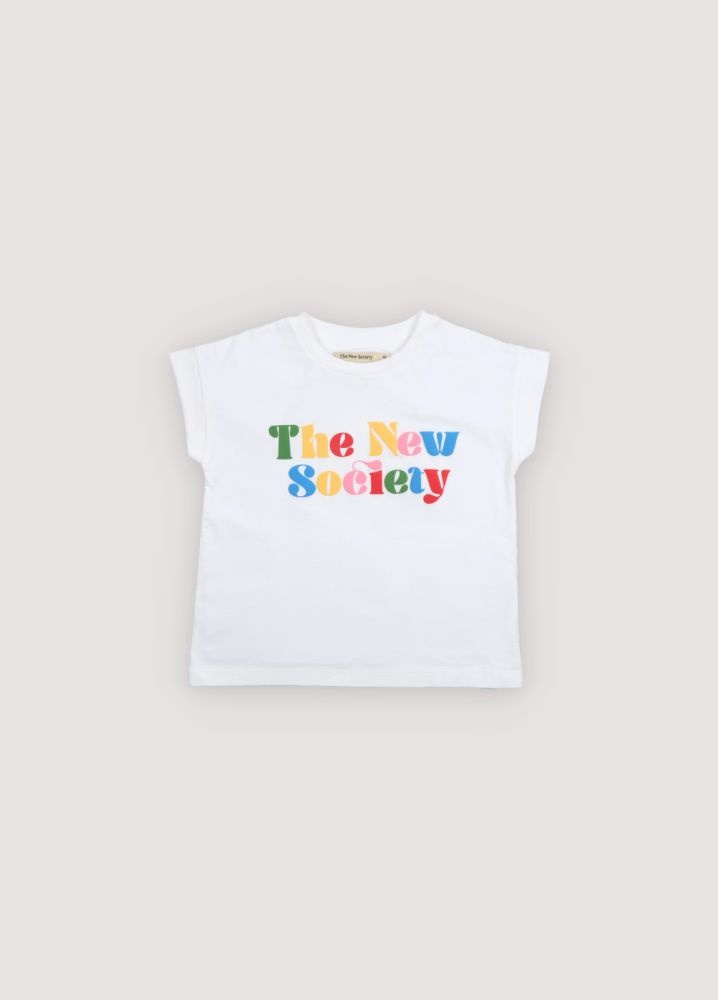 Dit t-shirt van The New Society is een frisse en speelse toevoeging aan de zomergarderobe. De top met korte mouwen is uitgevoerd in helder wit en heeft een kleurrijke The New Society-logo print op de voorkant, wat zorgt voor een vrolijke en herkenbare uitstraling. De rechte, comfortabele pasvorm maakt dit tshirt prettig om te dragen, zowel los als gecombineerd met een short, rok of broek. Een fijne basic met een grafisch accent, geschikt voor elke dag.