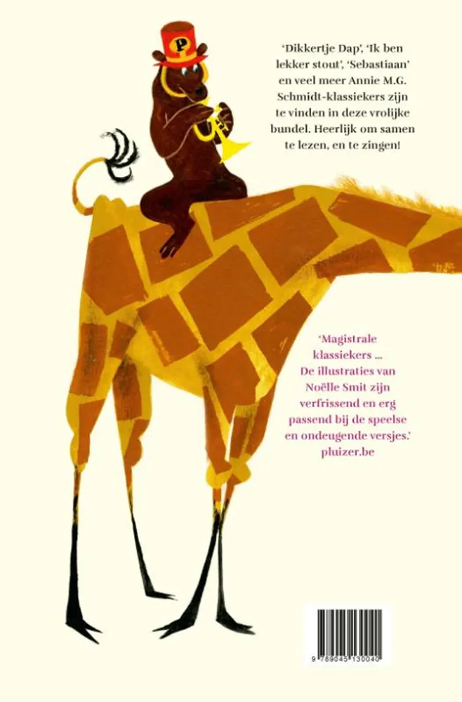 Niets is zo leuk als samen lezen en zingen. ‘Dikkertje Dap’ bijvoorbeeld, of ‘Het beertje Pippeloentje’, ‘Ik ben lekker stout’, ‘Sebastiaan’ en ‘De leeuw is los!’. Al die liedjes, en nog veel meer Annie M.G. Schmidt klassiekers, zijn te vinden in deze verrukkelijke bundel. Noëlle Smit maakte er illustraties bij en zette de vrolijke en altijd verrassende wereld van Annie M.G. Schmidt helemaal naar haar eigen hand.